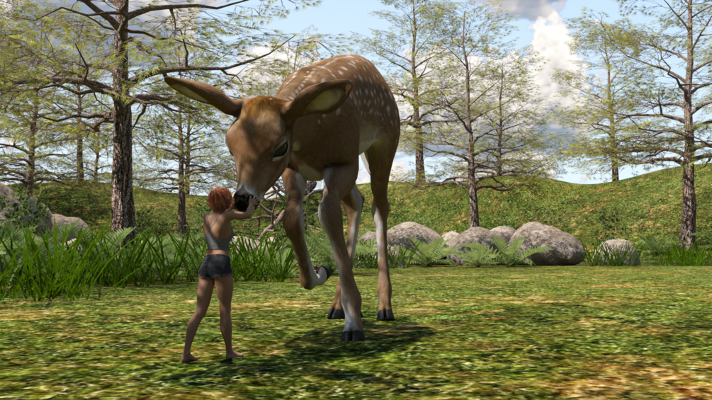 A curious deer stumble on an alone woman deep in the woods, how will it end?